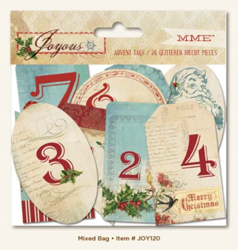 DODATKI TAGI Joyous CYFRY ADWENTOWE BROKATOWE 26szt JOY120 MME