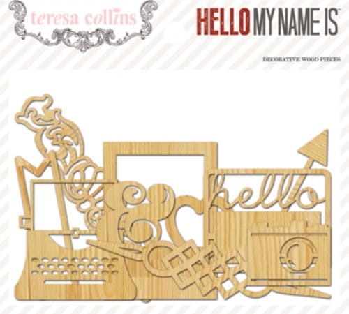 OZDOBY DREWNIANE 24szt HELLO MY NAME IS HMN120 teresa collins