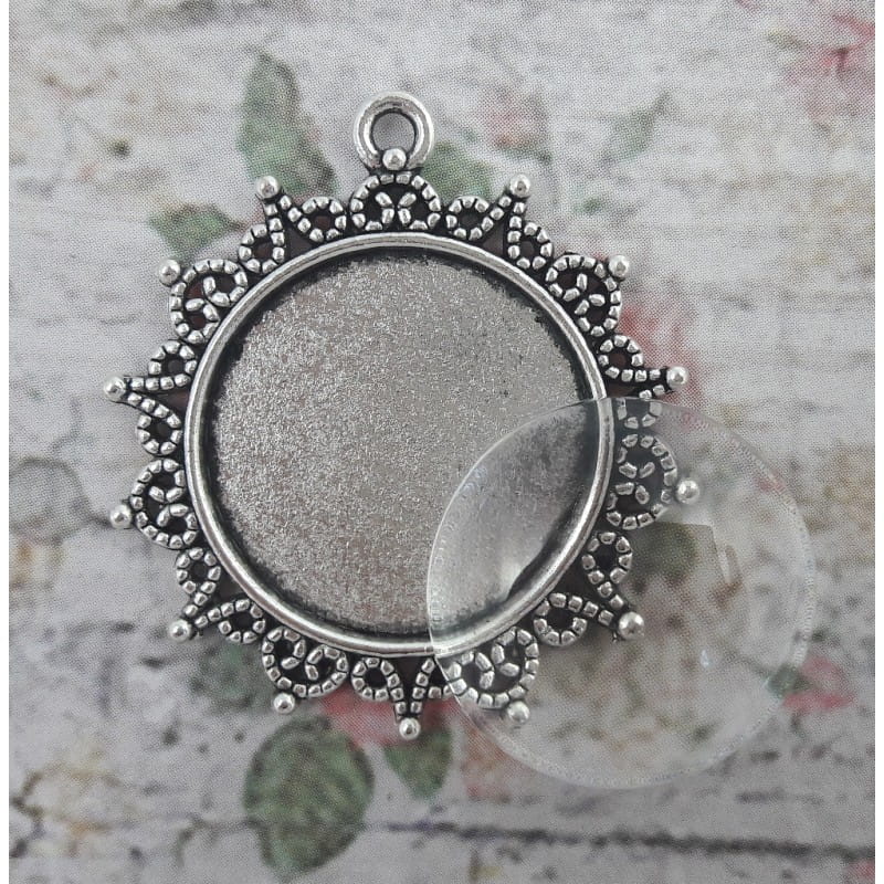 OZDOBY METALOWE KABOSZON - MEDALION+SZKŁO OKRĄGŁY 25mm