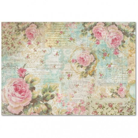 PAPIER RYŻOWY 48X33 RÓŻE I PISMO DFS363 STAMPERIA
