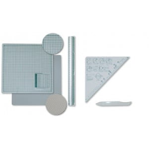 linijka, trójkąt z opisanymi rozmiarami, kość.